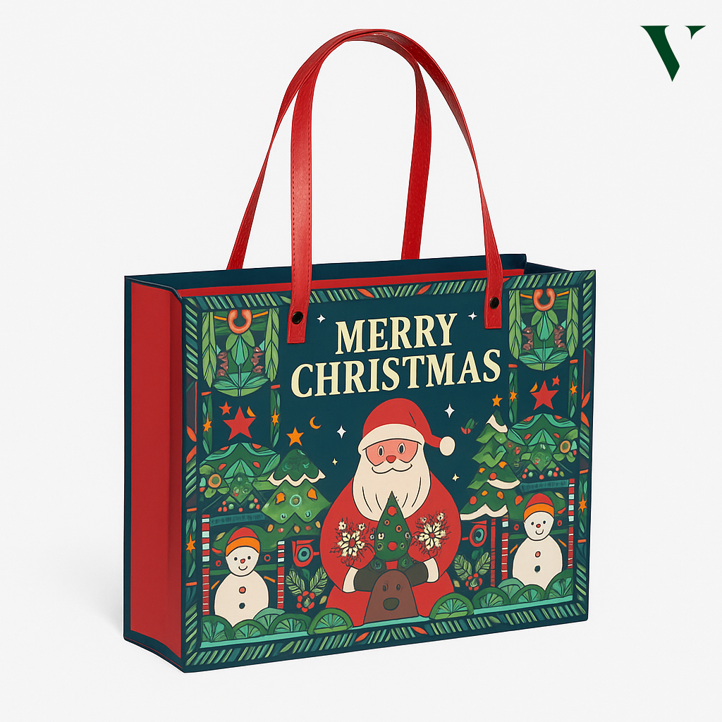 Bright, festive, and recyclable packaging for Christmas-related items.