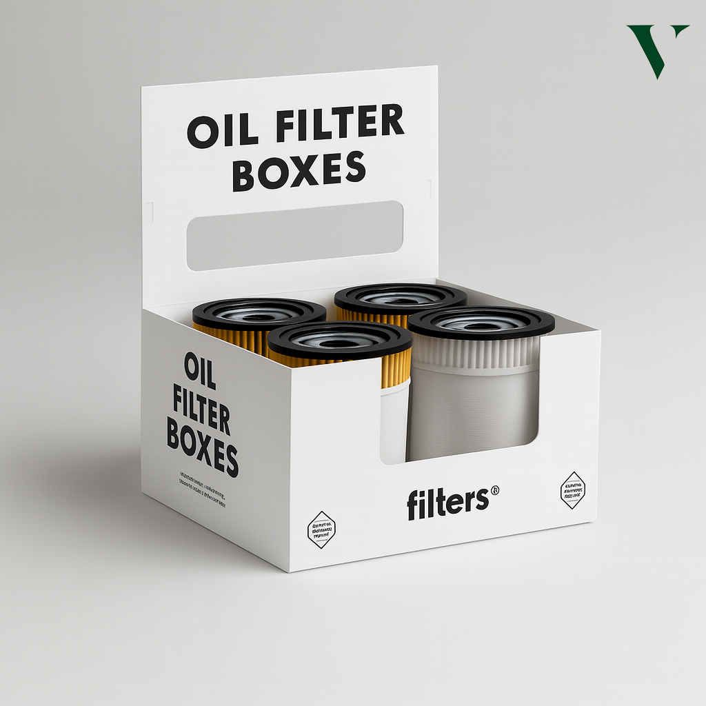 Filters, spark plugs, brake pads, headlights, and even larger components with add-ons are packaged in automotive boxes for protection.