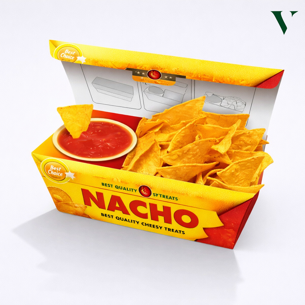 We offer custom nachos packaging that can be personalized with logos, brand colors, and prints, helping restaurants, food trucks, and snack vendors stand out. Our wholesale boxes are best for serving customers and increasing brand value. Choose our printed nachos boxes with logo to improve customer experience, protect your food, and enhance your brand’s presentation.