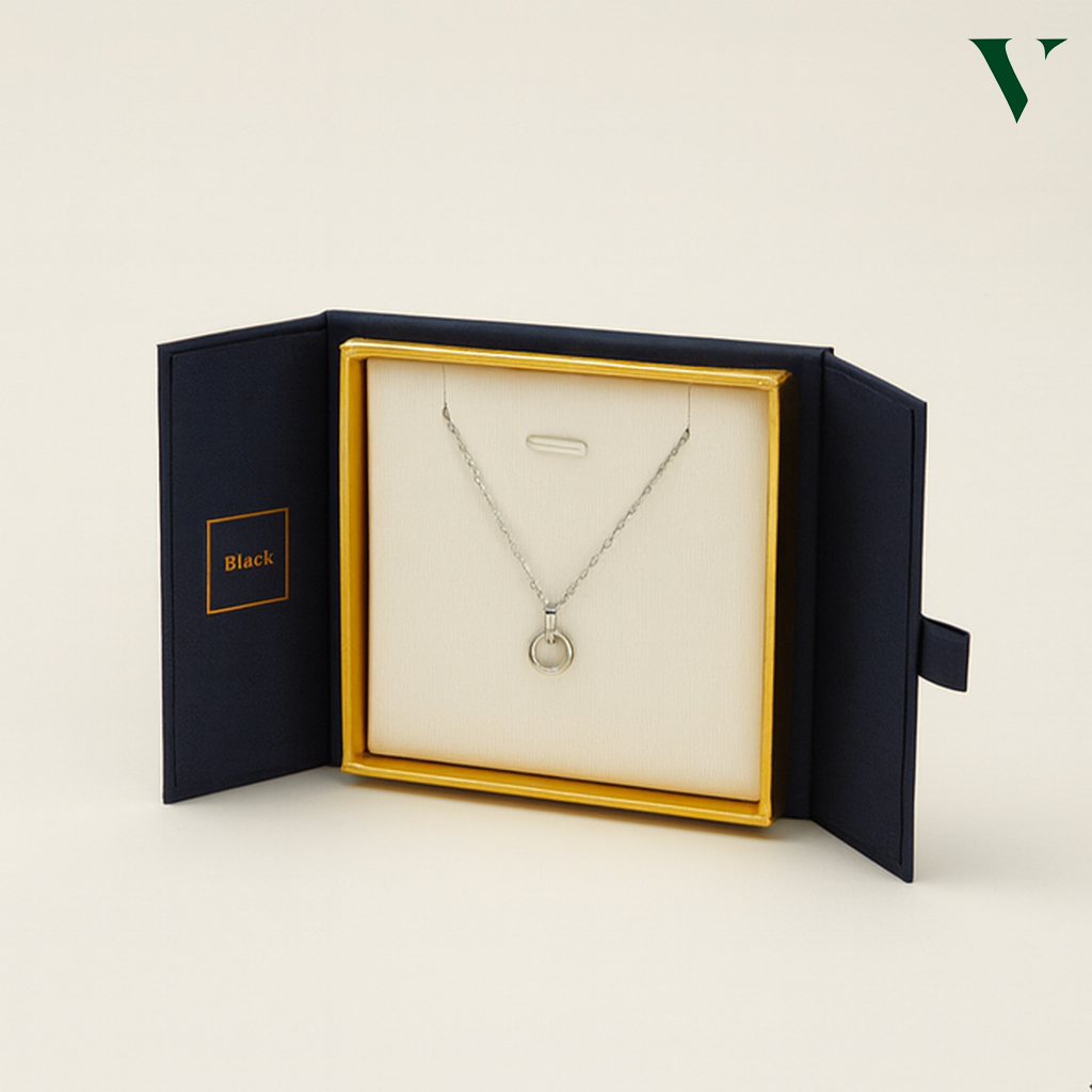 Amplify your jewelry brand through branded necklace packaging that showcases logo embossing, metallic hot stamping, ribbon accents, and premium color finishes, which reflect the value of your collection. The size of the necklace box for storage is compact, providing portability for convenient gifting. This is versatile for pendant collections, statement pieces, bridal jewelry, and retail displays. Elevate your jewelry presentation with our premium packaging solutions.