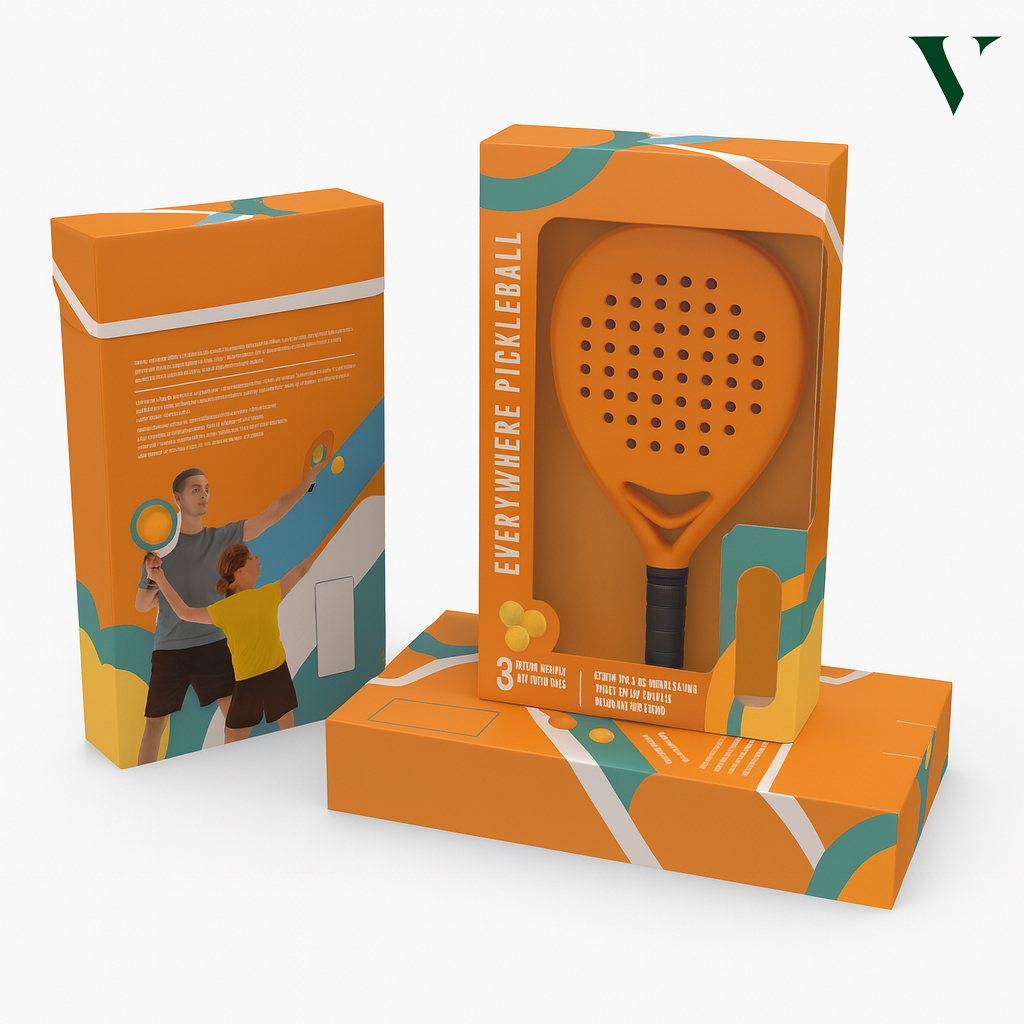 Value Packaging Hub offers premium custom padel boxes designed to display and protect your padel equipment in a stylish way. Whether you’re a startup sports brand or a professional retailer, our packaging is custom-made to increase brand sales and is safe for delivery. Our boxes are available in a premium to minimal range of custom styles that minimize scratches during shipping and restore the ball’s visibility in crowded sports stores. With CMYK and PMS printing, your logo and graphics are displayed in attractive colours. We also offer luxury finishes and custom inserts or fence partitions to prevent movement. Choose Value Packaging Hub – your reliable partner for branded padel packaging boxes that make a lasting impression on and off the court. If you want to target retail buyers, you must add hanger-style boxes in your stores for maximum visibility. Contact us today to receive a complimentary custom quote!