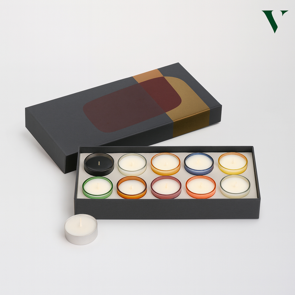 Perfectly sized eco-friendly kraft packaging for individual or small tea light sets.